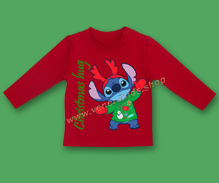 Блуза коледна Стич с надпис червена. Серия 3бр.