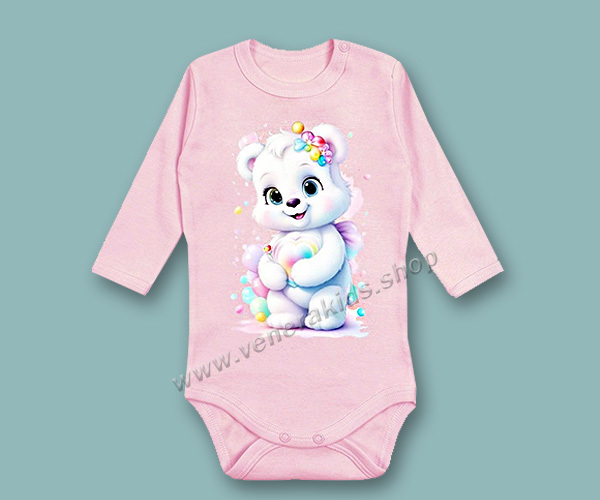 Бебе боди момиче рипс сито Мече розово. 5бр