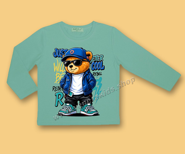 Блуза дълъг ръкав сито Мечо св. зелена. Серия 3бр