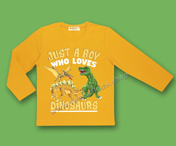Блуза дълъг ръкав сито Динозаври петрол. Серия 3бр