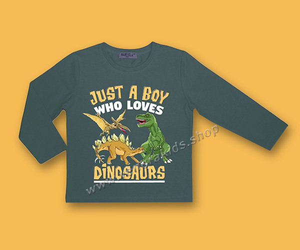 Блуза дълъг ръкав сито Динозаври петрол. Серия 3бр