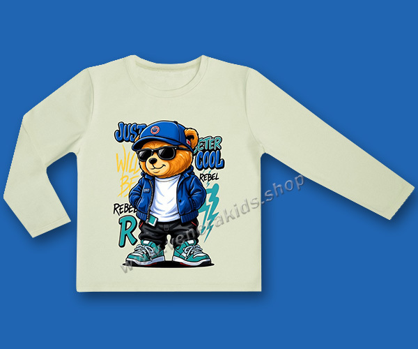 Блуза дълъг ръкав сито Мечо зелена. Серия 3бр