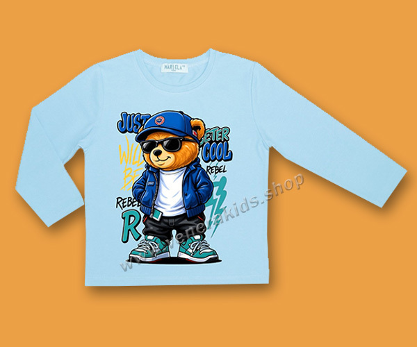 Блуза дълъг ръкав сито Мечо синя. Серия 3бр