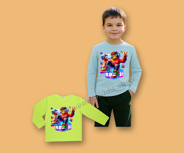 Блуза дълъг ръкав сито Динозаври петрол. Серия 3бр