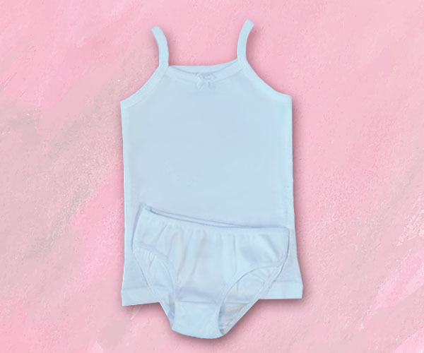Детски комплект бельо за момиче. Камизолка тънка презрамка с бикина. Материя рипс.