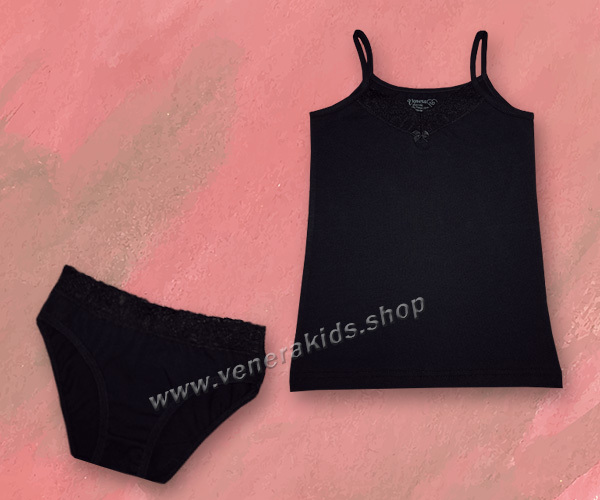 Комплект камизолка тънка презрамка с бикина - дантела. Материя памук/ликра.