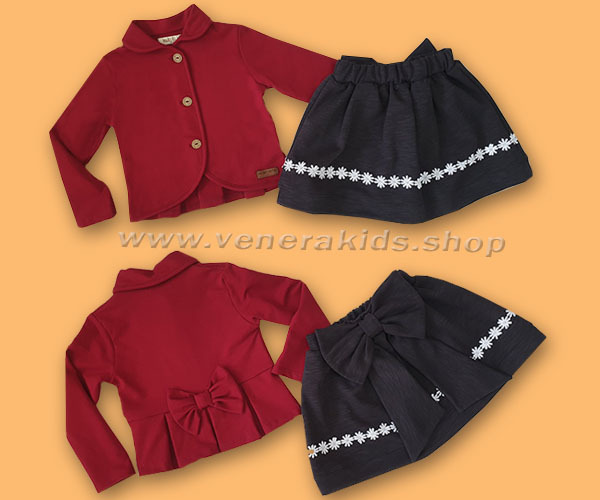 Детски комплект сако с пола. Памук 95%, еластан 5%. Серия 3бр. в пакет. Посочената цена е за серията.