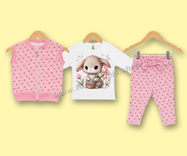 Комплект момиче Зайче дълъг ръкав. Материя - памук и ликра. Посочената цена е за серията.