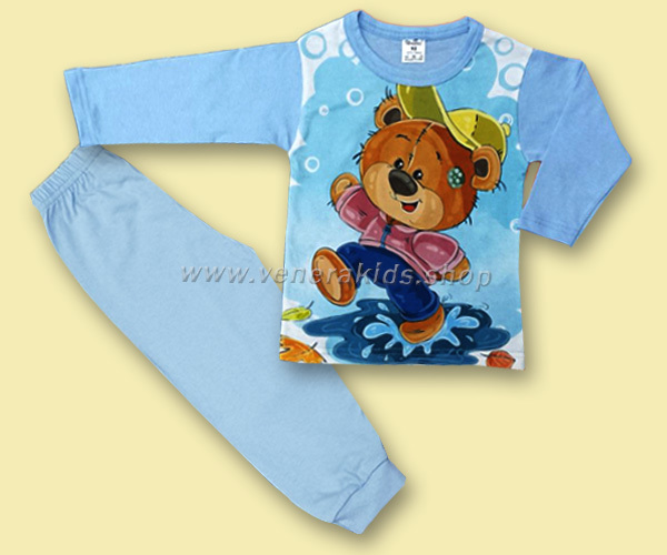 Пижама момче дълъг ръкав, сингъл сито мече шапка. Посочената цена е за серията.