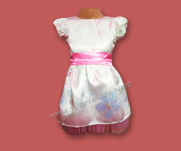 Рокля принт цветя сатен с тюл. Серия 4бр
